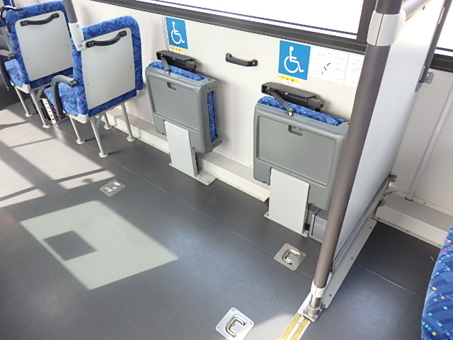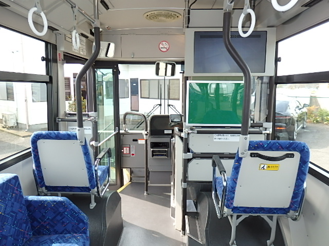 - 中型路線仕様・ワンステップ式 シフト・6MT ニーリング装置装着 定員・60名*(正座席・27名+D席・1名+立席・32名)*シートレイアウト・路線バス仕様 バリアーフリー適合車 車椅子用スロープ板(中扉・床部収納式) エアコン・DESNO製 ヒーター・温水式 降車ボタン・なし バックアイカメラ・カラー液晶モニター 換気扇・2基 タイヤ状態:夏用ラジアルタイヤ・6本・50% 塗装状態:白1色*(全塗装施工実施済)
