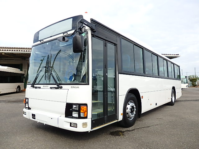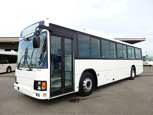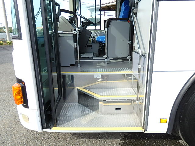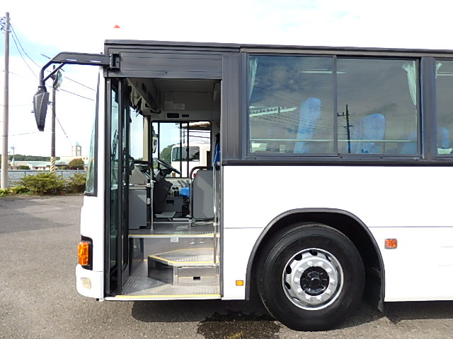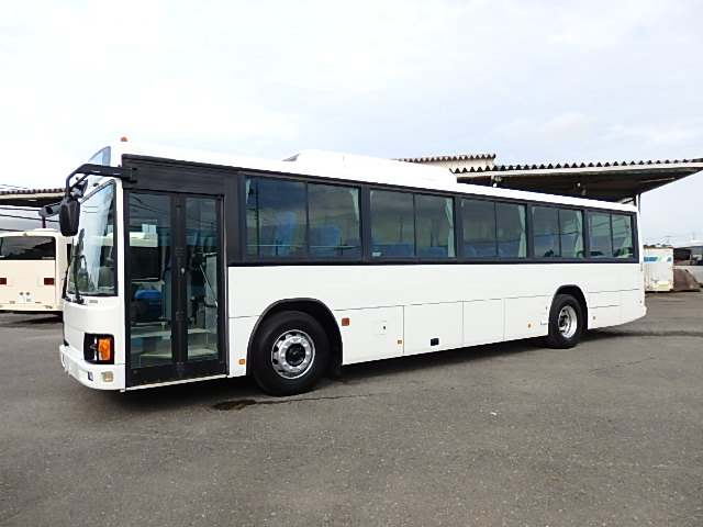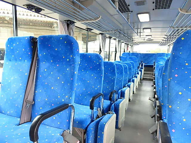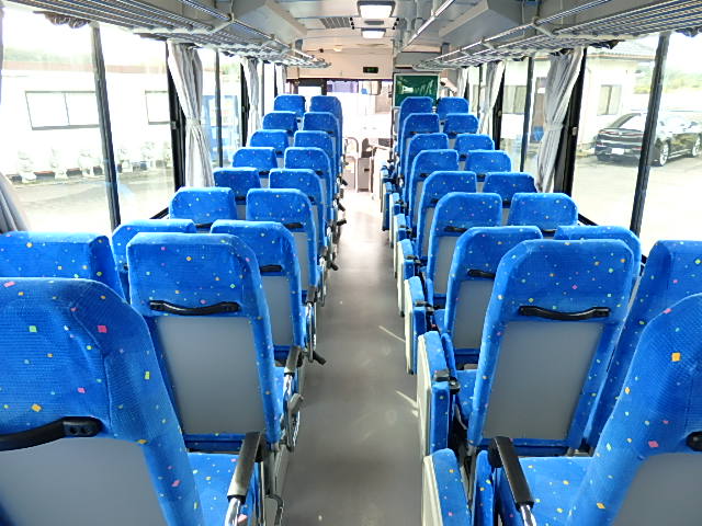 - 送迎仕様 TOP扉 シフト・AT(アリソン製) 13列シート 定員・81名*(正座席・53名+補助席・11名+D席・1名+立席・16名) モケット・ハイバック・固定シート シートレイアウト*(2人掛け×2人掛け+補助席) エアコン・直結式(DENSO製) ヒーター・寒冷地用プレヒーター装着(三国製) マイク機能付・ラジオアンプ バックアイカメラ・カラー液晶モニター タイヤ状態・夏用タイヤ・縦溝・6本・30% 塗装状態:白色・1色*(ボディ磨き予定)