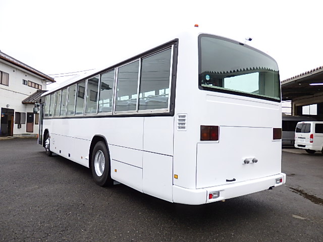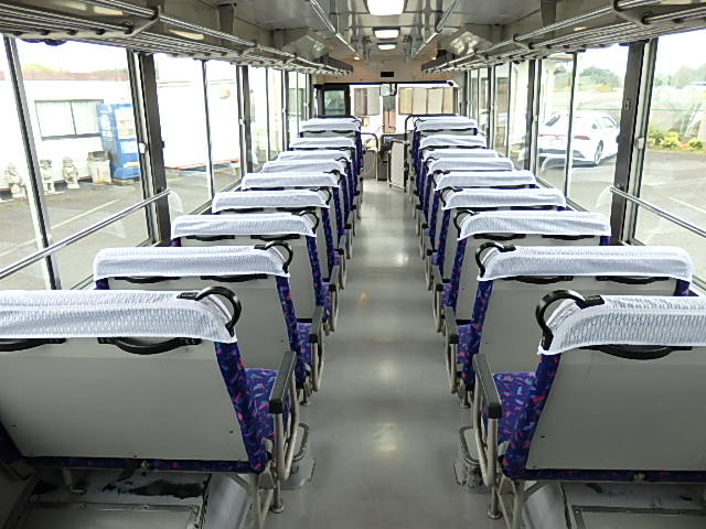 - 送迎仕様 TOP扉 シフト・6MT 13列シート 定員・89名*(正座席・53名+補助席・なし+D席・1名+立席・35名) モケット・ハイバック・固定シート シートレイアウト*(2人掛け×2人掛け) エアコン・直結式(DENSO製) ヒーター・寒冷地用プレヒーター装着(三国製) マイク機能付・ラジオアンプ バックアイカメラ・カラー液晶モニター タイヤ状態・MIXタイヤ・新品交換実施済・6本 塗装状態:全塗装実施済・白色・1色