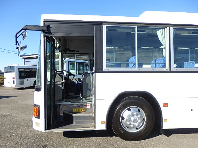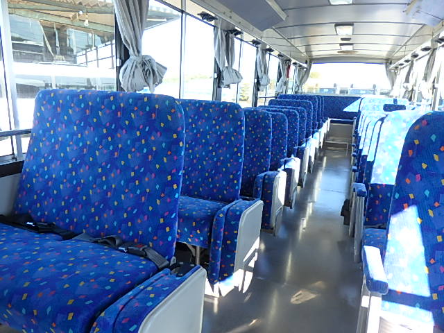 - 送迎仕様 TOP扉 シフト・6MT 11列シート 定員・56名*(正座席・45名+補助席・10名+D席・1名) モケット・ハイバック・固定シート シートレイアウト*(2人掛け×2人掛け+補助席) エアコン・直結式(DENSO製) ヒーター・温水循環式 マイク機能付・ラジオアンプ バックアイカメラ・カラー液晶モニター タイヤ状態・MIXタイヤ・フロント2本・新品交換済 リヤ・30% 塗装状態:全塗装実施済・白色・1色