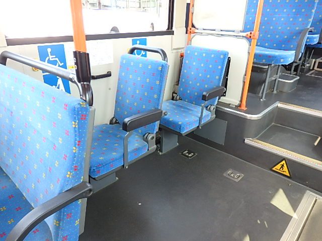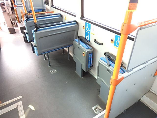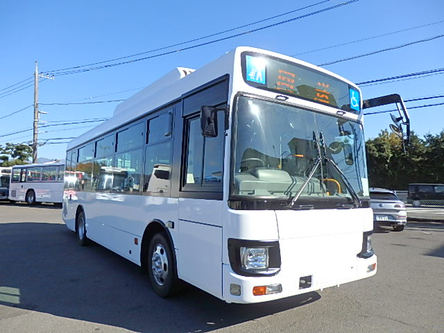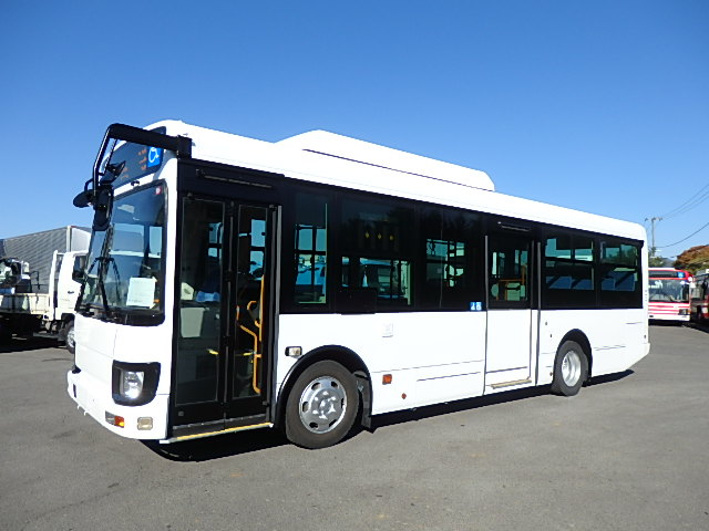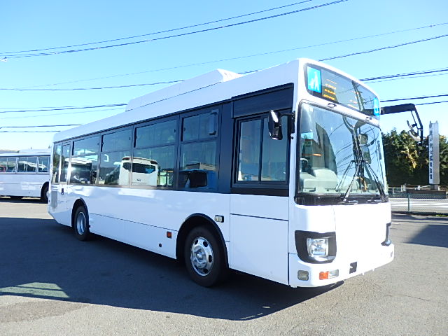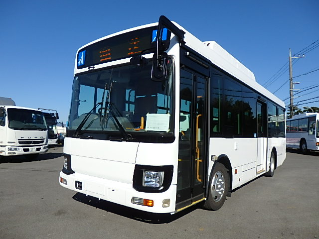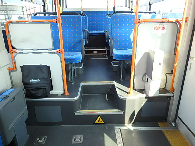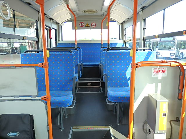 - 中型ノンステップ式・路線バス 郊外線仕様 シフト・AMT ニーリング装置装着 定員・57名*(正座席・26名+D席・1名+立席・30名)*シートレイアウト・路線バス仕様 バリアーフリー適合車 車椅子用スロープ板(中扉・床部収納式) エアコン・DESNO製 ヒーター・温水式 降車ボタン・なし バックアイカメラ・カラー液晶モニター 換気扇・2基 タイヤ状態:冬用スタッドレスタイヤ・6本・50% 塗装状態:指定色・全塗装実施済・白1色