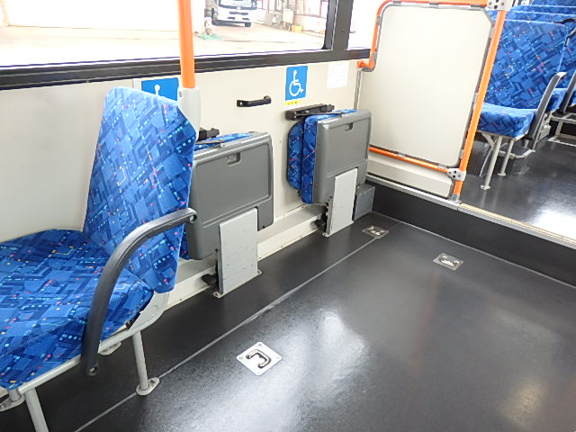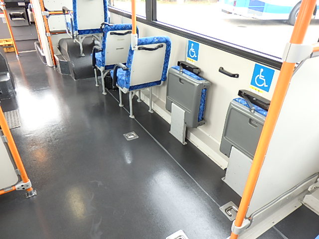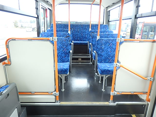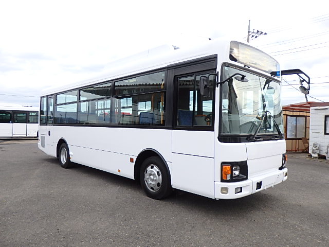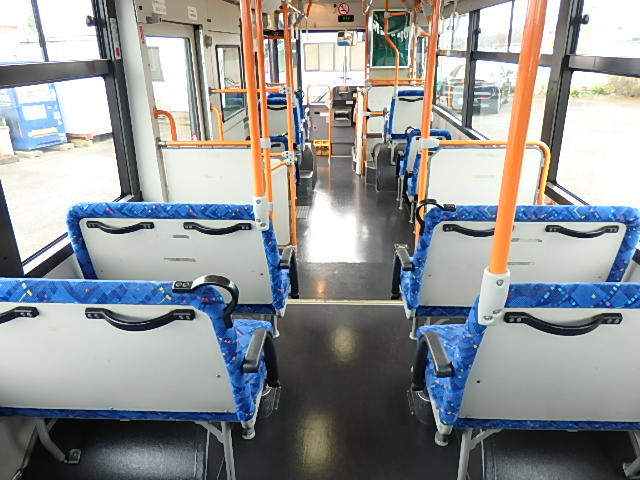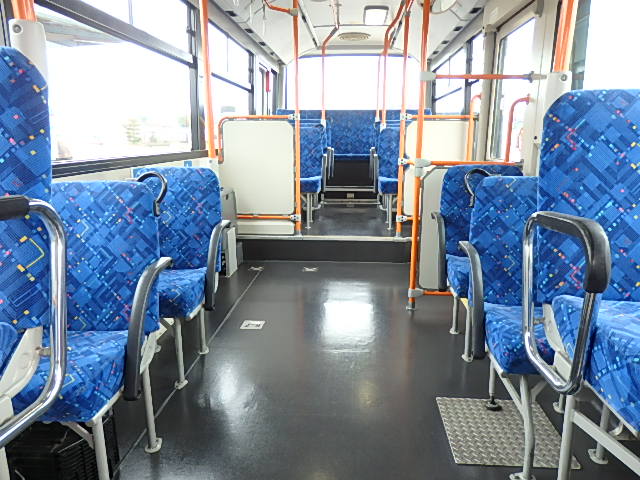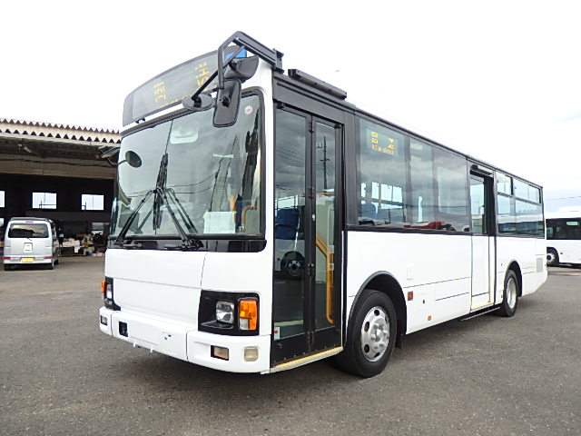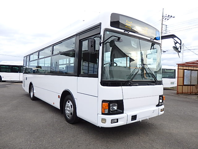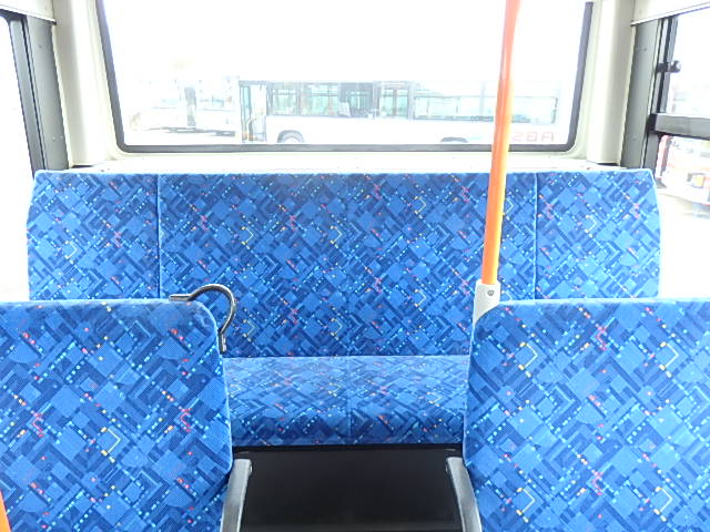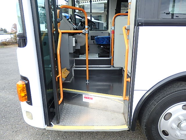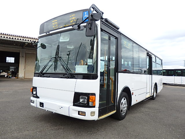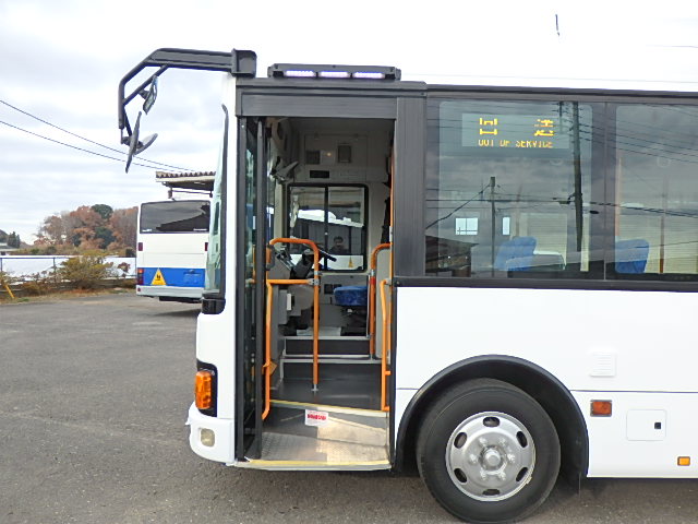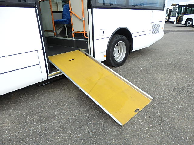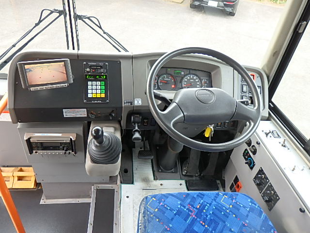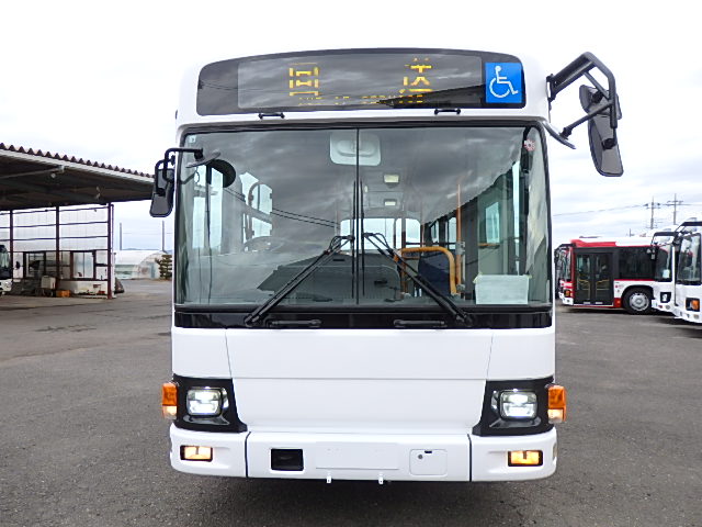 - 中型ワンステップ式・前中扉・路線仕様 シフト・6MT 定員・62人【27名】*(正座席・26名+D席・1名+立席・35名) ニーリング機能付 車椅子用スロープ板・中間扉下部格納式 *室内部・シートレイアウト等は現況写真をご参照ください エアコン・DENSO製 ヒーター・温水循環式 バックアイカメラ・カラー液晶モニター タイヤ状態:夏用縦溝タイヤ・6本・10%、塗装状態:全塗装実施済・白色1色 *フロント行燈・LED式方向幕(オージ製)