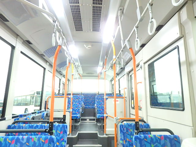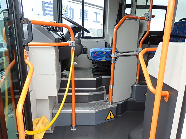 - 中型路線仕様・ノンステップ式 シフト・AMT アドブルー対応(尿素) ニーリング装置装着 定員・56名*(正座席・28名+D席・1名+立席・27名)*シートレイアウト・路線バス仕様 バリアーフリー適合車 車椅子用スロープ板(中扉・床部収納式) エアコン・DESNO製 ヒーター・温水式 降車ボタン・なし バックアイカメラ・カラー液晶モニター 換気扇・2基 タイヤ状態:冬用スタッドレスタイヤ・6本・50% 塗装状態:指定色・白1色・現状