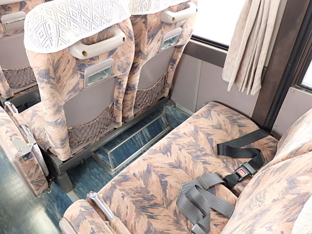- 送迎仕様 47名乗り*(正座席・37名+補助席・8名+D席・1名+G席・1名) 自動扉 9列・モケット・リクライニング式 直結式エアコン(DENSO製) ヒーター・プレヒーター式(三国製) 液晶TV(フロント) 冷蔵庫 電動式・補助ステップ 換気扇・1基(前側) バックアイカメラ・カラー液晶モニター装着 タイヤ状態・夏用タイヤ・4本・新品+2本(後輪内側)・30% * 塗装状態:全塗装実施済・白1色 *旧使用者・事業用・学校の送迎にて運行