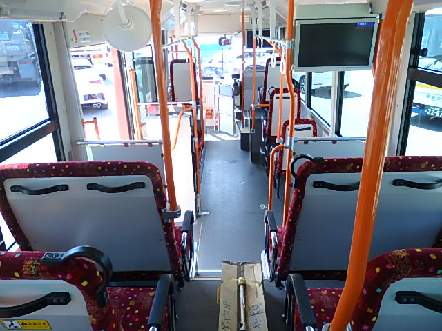 - 中型路線仕様・ノンステップ式 ニーリング装置装着 定員・57名*(正座席・26名+D席・1名+立席・30名)*シートレイアウト・路線バス仕様 バリアーフリー適合車 車椅子用スロープ板(中扉収納式) エアコン・DESNO製 ヒーター・寒冷地用プレヒーター(ミクニ製) 降車ボタン・なし バックアイカメラ・カラー液晶モニター 換気扇・2基 タイヤ状態:MIXタイヤ・6本・50% 塗装状態:指定色・現状(塗装変更条件)