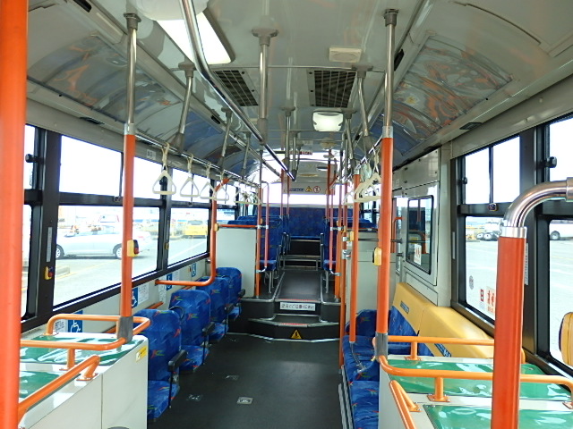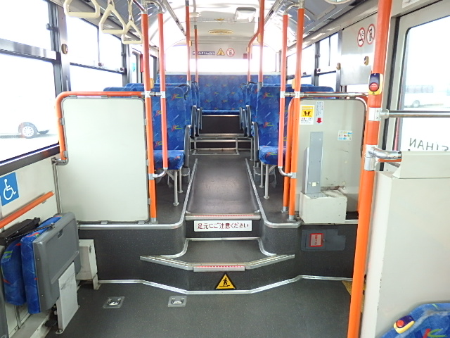 - ノンステップ式 路線バス仕様 前中扉 バリアフリー適合 シフト・AT(アリソン製) LED方向幕・3方向(LECIP製) 放送装置・取り外し済 車椅子用スロープ板装備 ニーリング装置 降車ボタン LED降車灯 車外照射灯 エアコン・DENSO製 ヒーター・温水循環式 タイヤ状態:夏用・縦溝スタイヤ・10%・6本 塗装状態:旧事業者・大手路線事業者・指定色・現状(塗装変更条件)