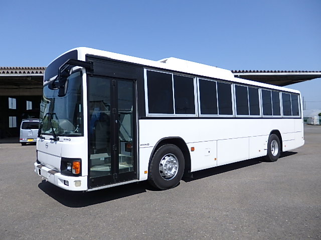 - 送迎仕様 TOP扉 シフト・6MT 12列シート 定員・83名*(正座席・49名+補助席・なし+D席・1名+立席・33名) モケット・ハイバック・固定シート シートレイアウト*(2人掛け×2人掛け・補助席なし) エアコン・直結式(DENSO製) ヒーター・温水循環式 マイク機能付・ラジオアンプ バックアイカメラ・カラー液晶モニター タイヤ状態・
